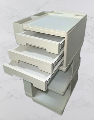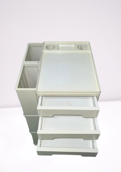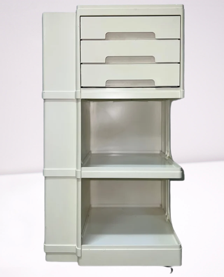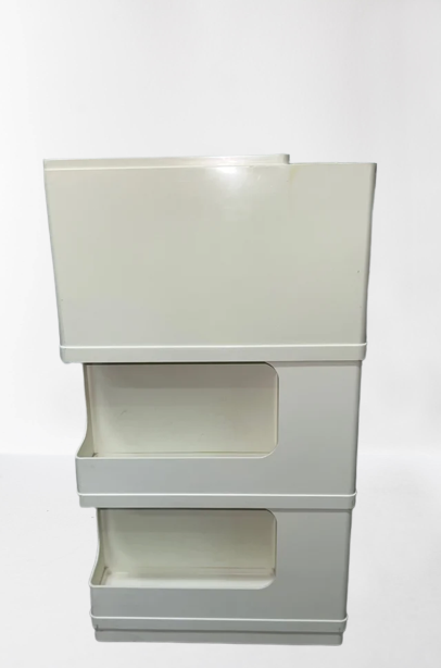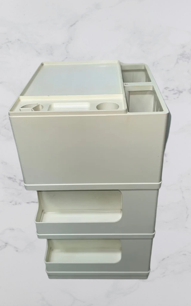 Carrello Contenitore modello Neolt, anni '70, made in Italy in materiale plastico di colore Avorio.