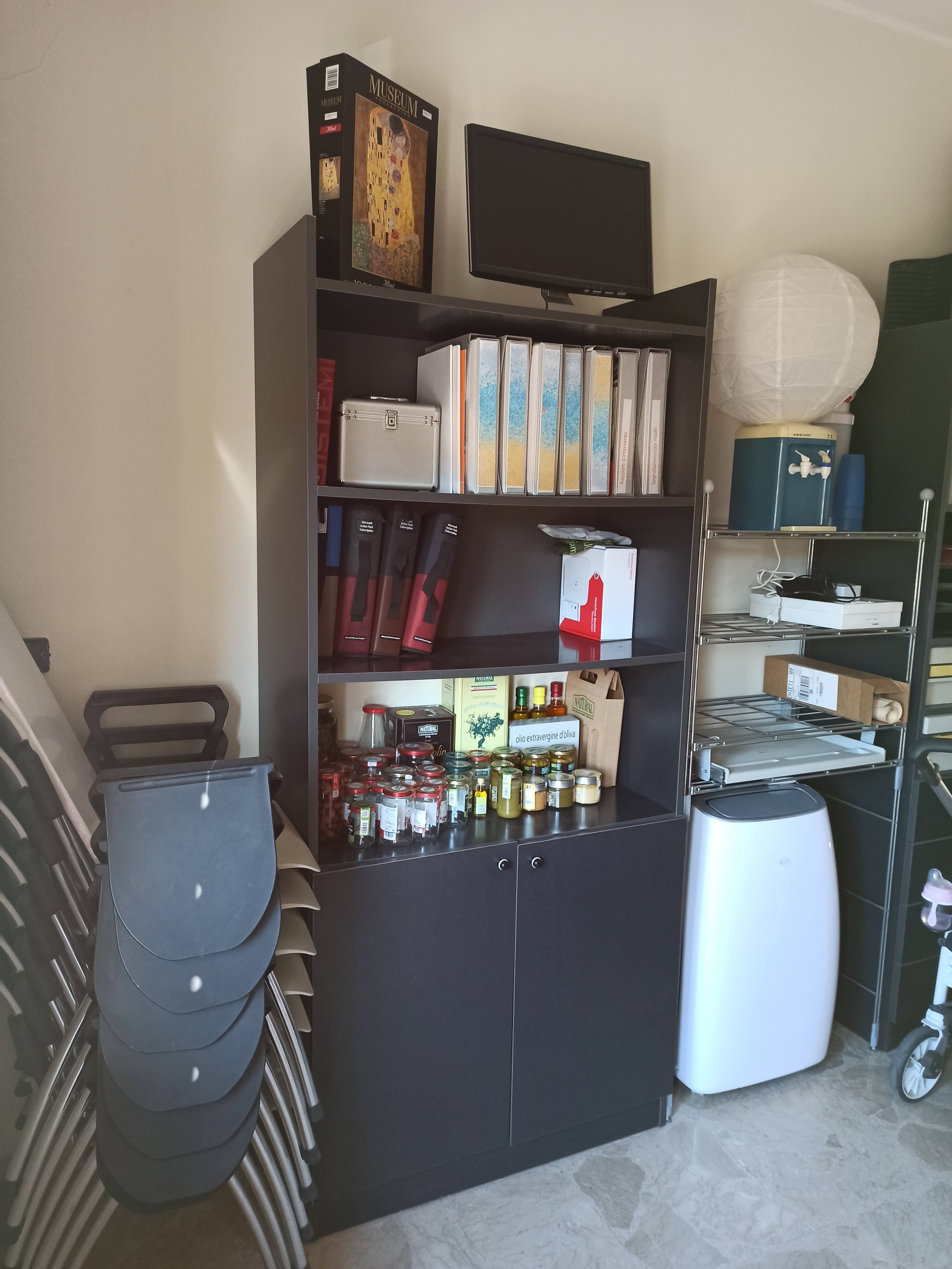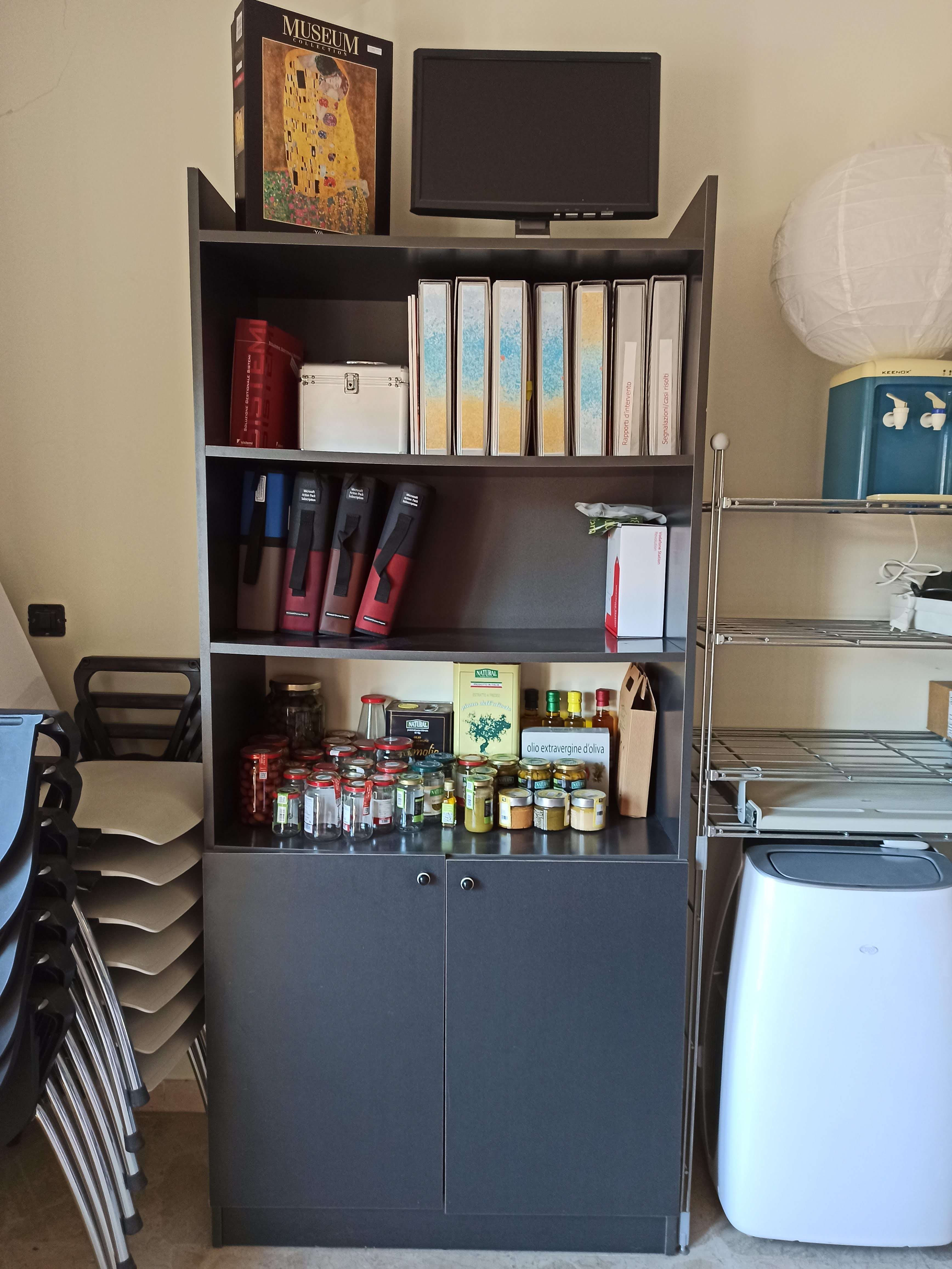 Scaffale composto da tre mensole e due ante nel basso in antracite.